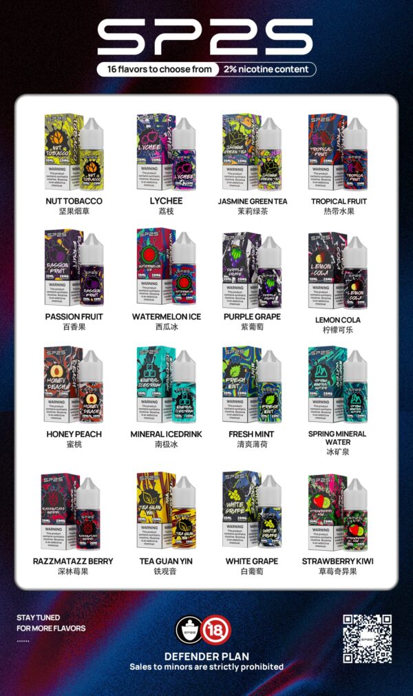 SP2S煙油帶來多元化的風味體驗,涵蓋煙草、茶韻、果香與冰爽系列: